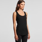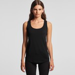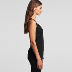 Curved hem, racer back detail, self-fabric binding at neck and armholes
